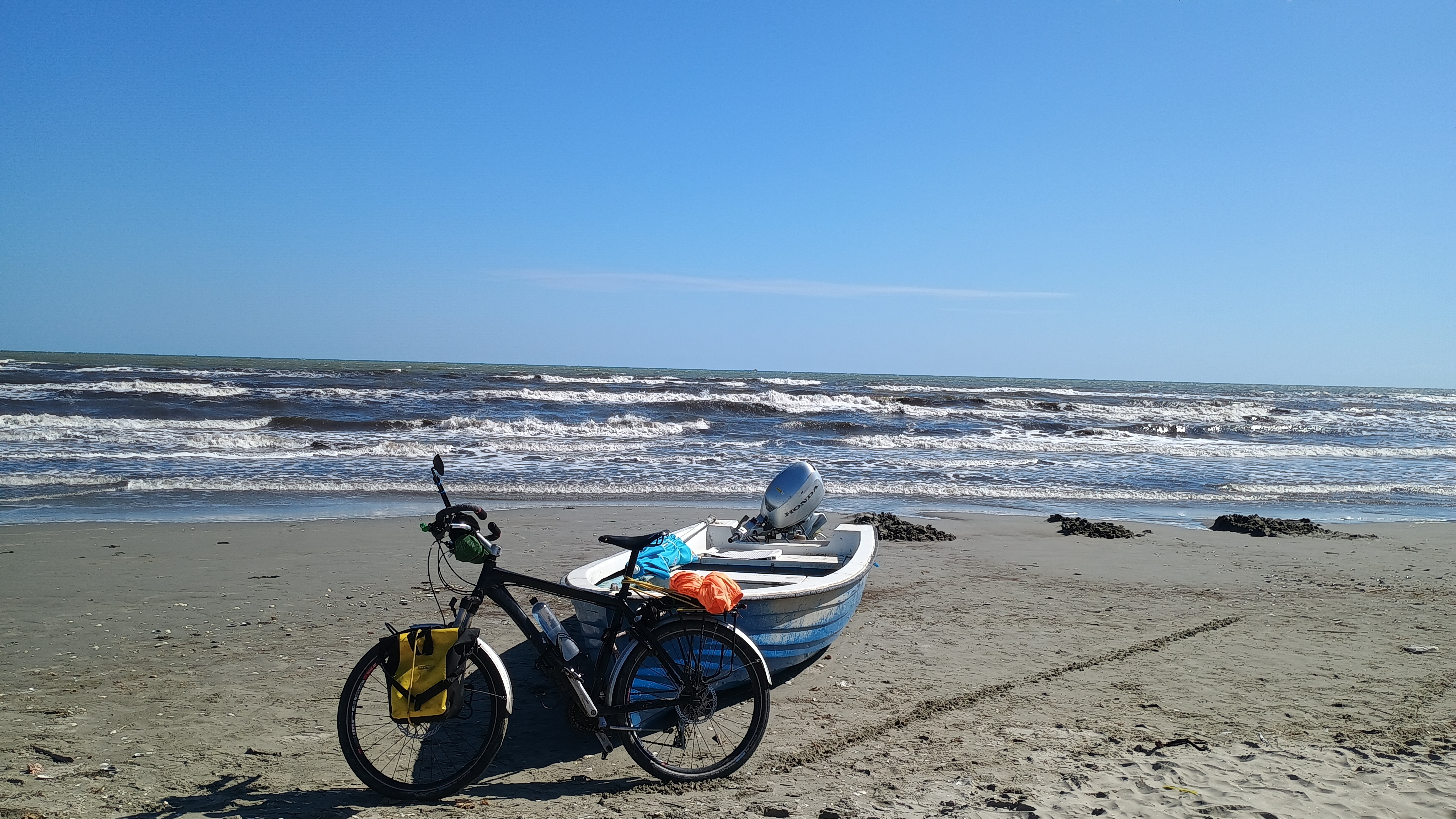 Then, just to make the point, I cycled to Sulina beach and the Black Sea, and of course I had to take a few pictures of it. So, my bike is now in selfies of the Black Sea, the Pacific, the Atlantic, the North Sea and the Mediterranean. Its been getting around, it seems.