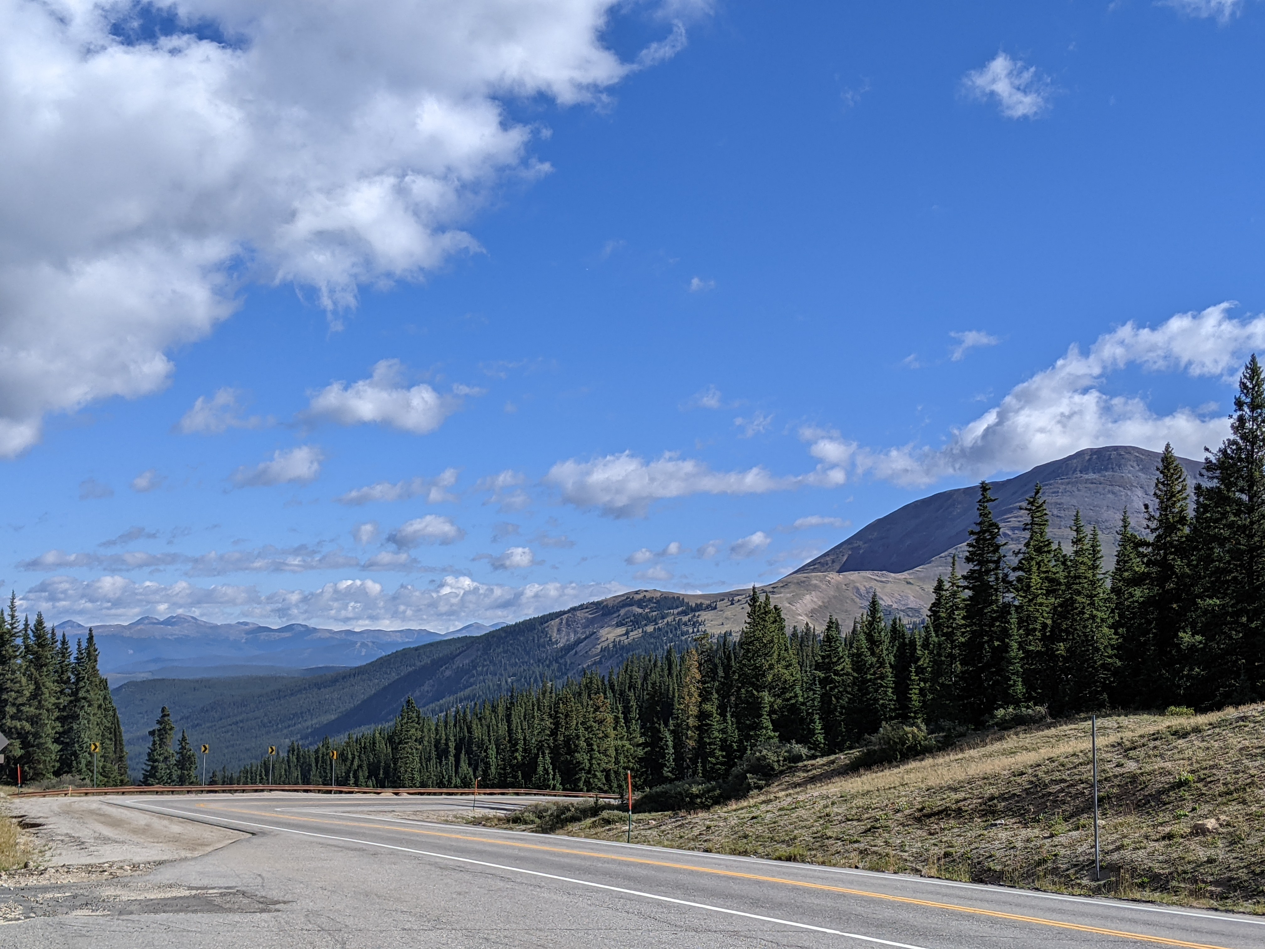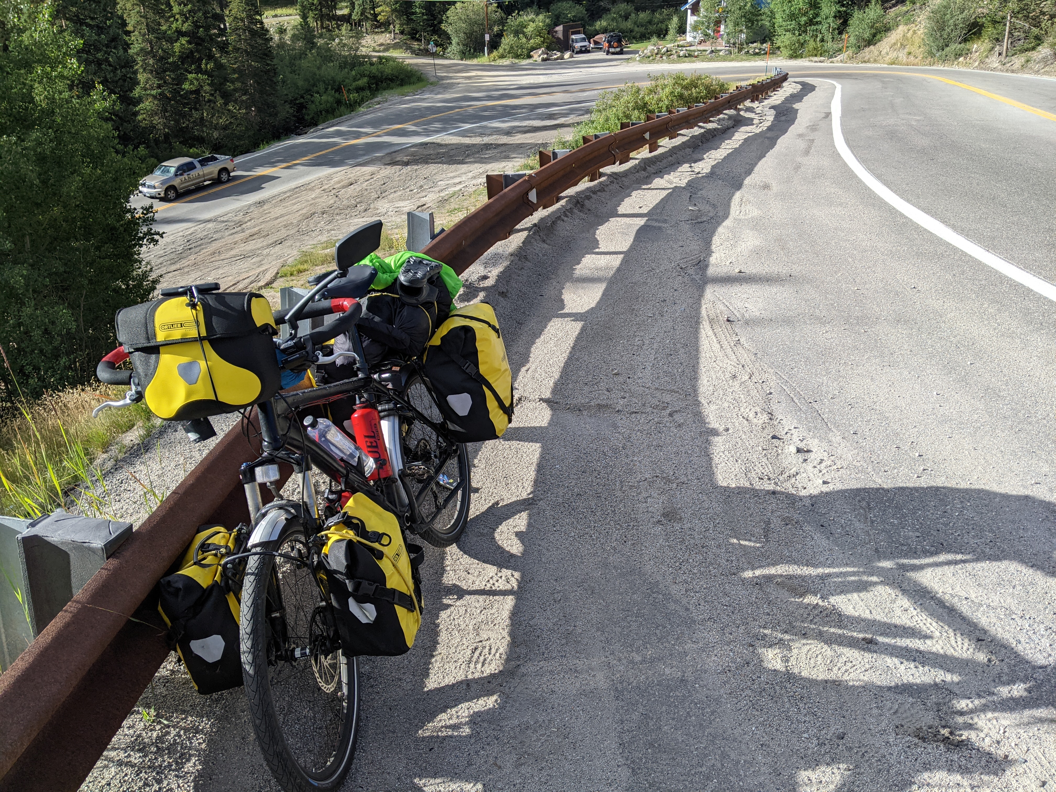 On Tuesday it was over the Hoosier Pass, the highest point of the TA Trail. The ascent was only 2,000 ft and it took me just 2 hours. Only two times I was almost running out of gears, both times on the inside of serpentines. Tommy, you know from the Logie Kirk Climb, what difference the inside and outside make. The 30 days of training seems to be paying off. I got to the top without much of a problem. In planning, the 11,000 ft were a bit of a worry, but in the end it all went smoothly.