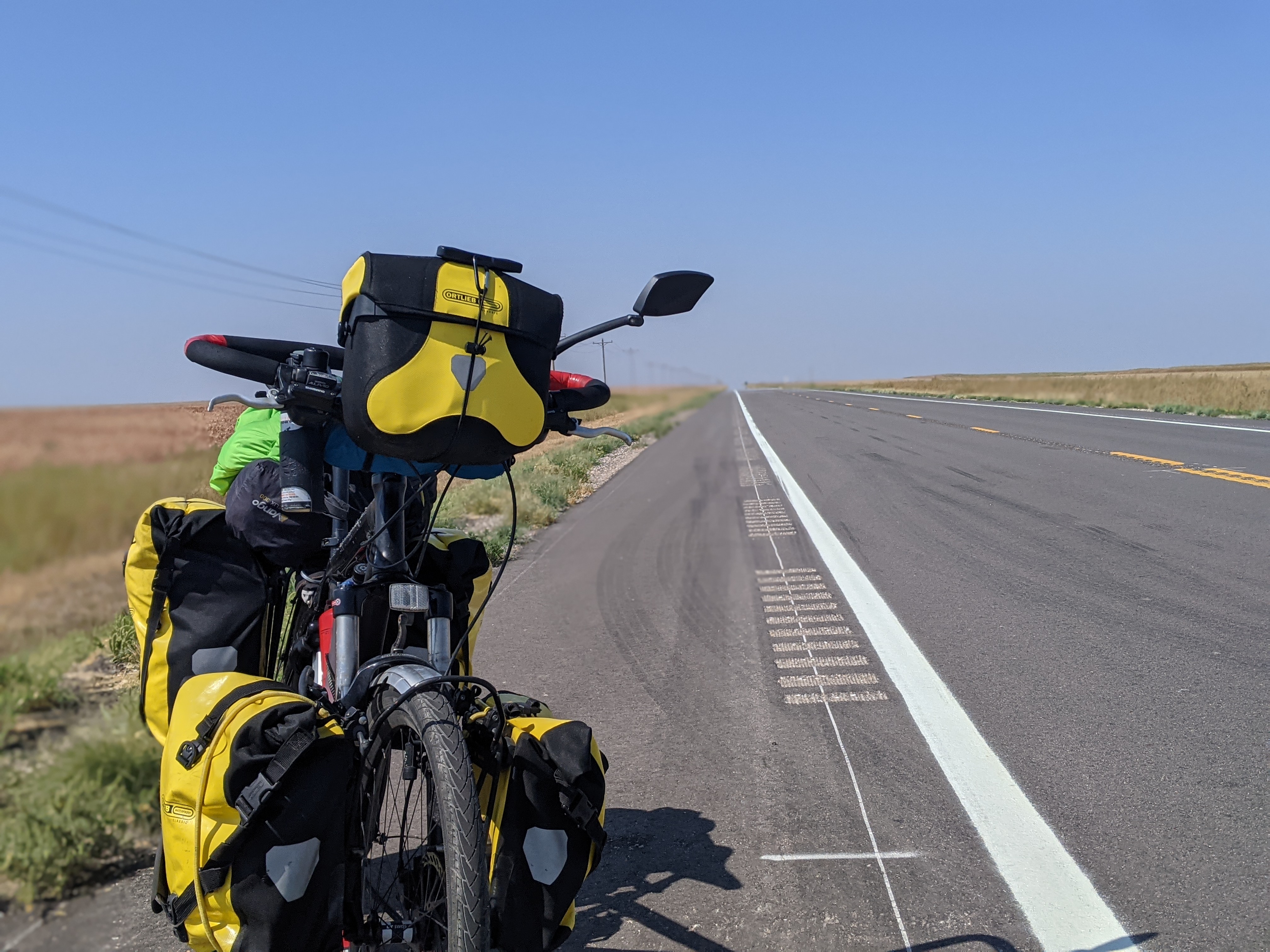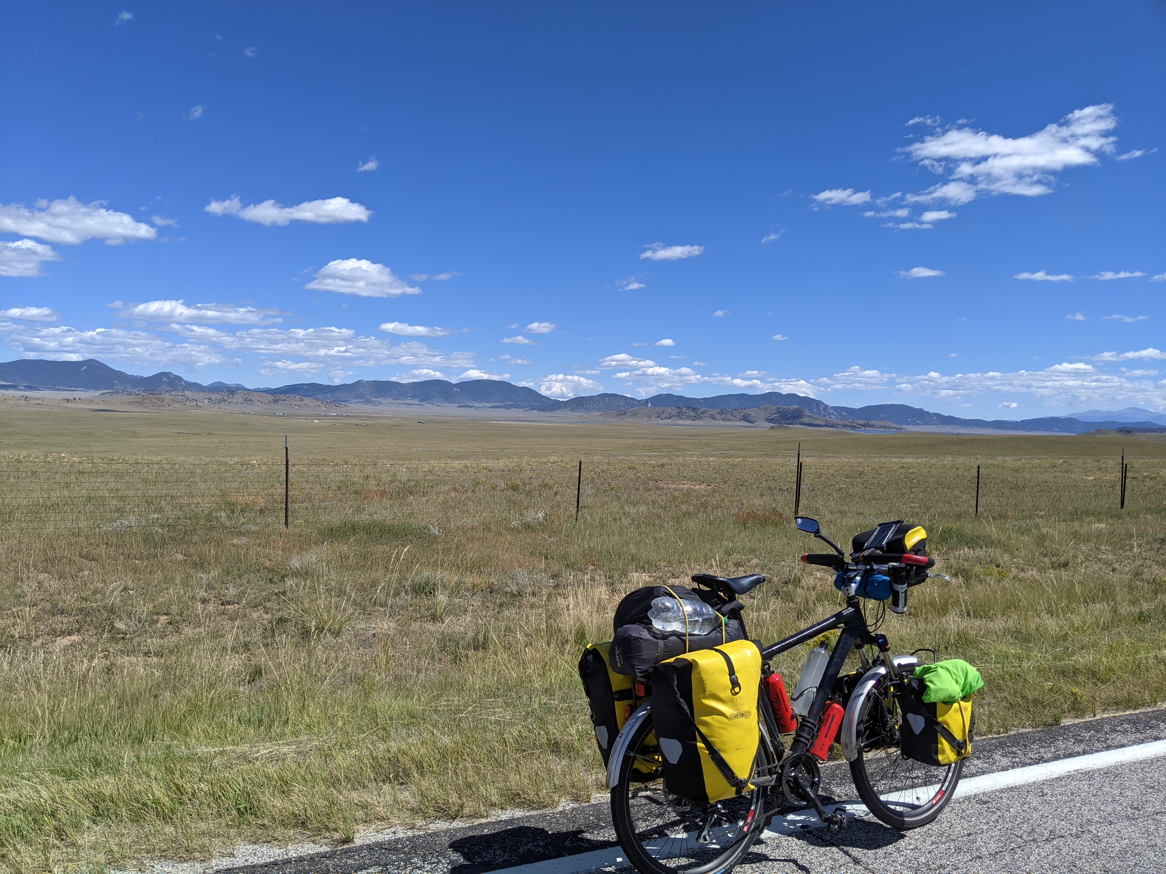 On the Plains, cycling on these long straight roads took some getting used to. In fact, after the Rockies, it felt positively odd. It didn't seem to make sense. You would peddle along, and in the distance would see a car or truck appearing on the horizon. You would keep peddling, then, a bit later, look up, and it wouldn't have moved. Maybe just got a tiny bit bigger. Again, after some time, you look up again. Again a bit bigger, but nowhere close. Finally, after what seems ages, you could hear it, and then finally it would pass you, and equally slowly, disappear from your rearview mirror.