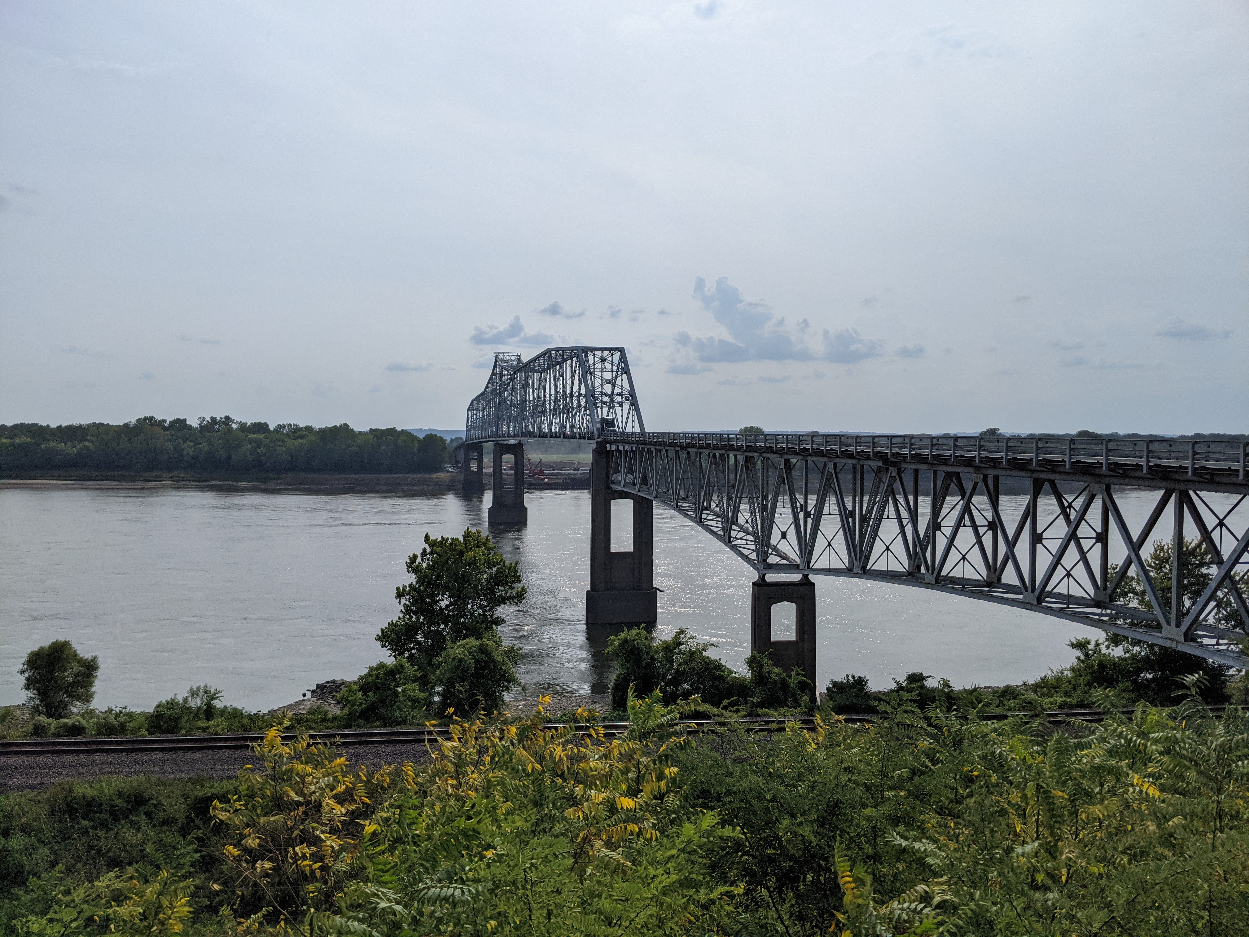 Friday was a rather short ride of only 46 miles as I did additional miles yesterday. The route was hilly at first, but then I hit Mississippi floodplains. The first flat roads since leaving Kansas! Then up the ramp and onto the bridge across the Mississippi. It was rather exciting but I couldn't really enjoy it, because the bridge was just two lanes with no hard shoulder. So, no place to stop and take photos. Nevertheless, it felt as if I was passing another milestone on the trip.